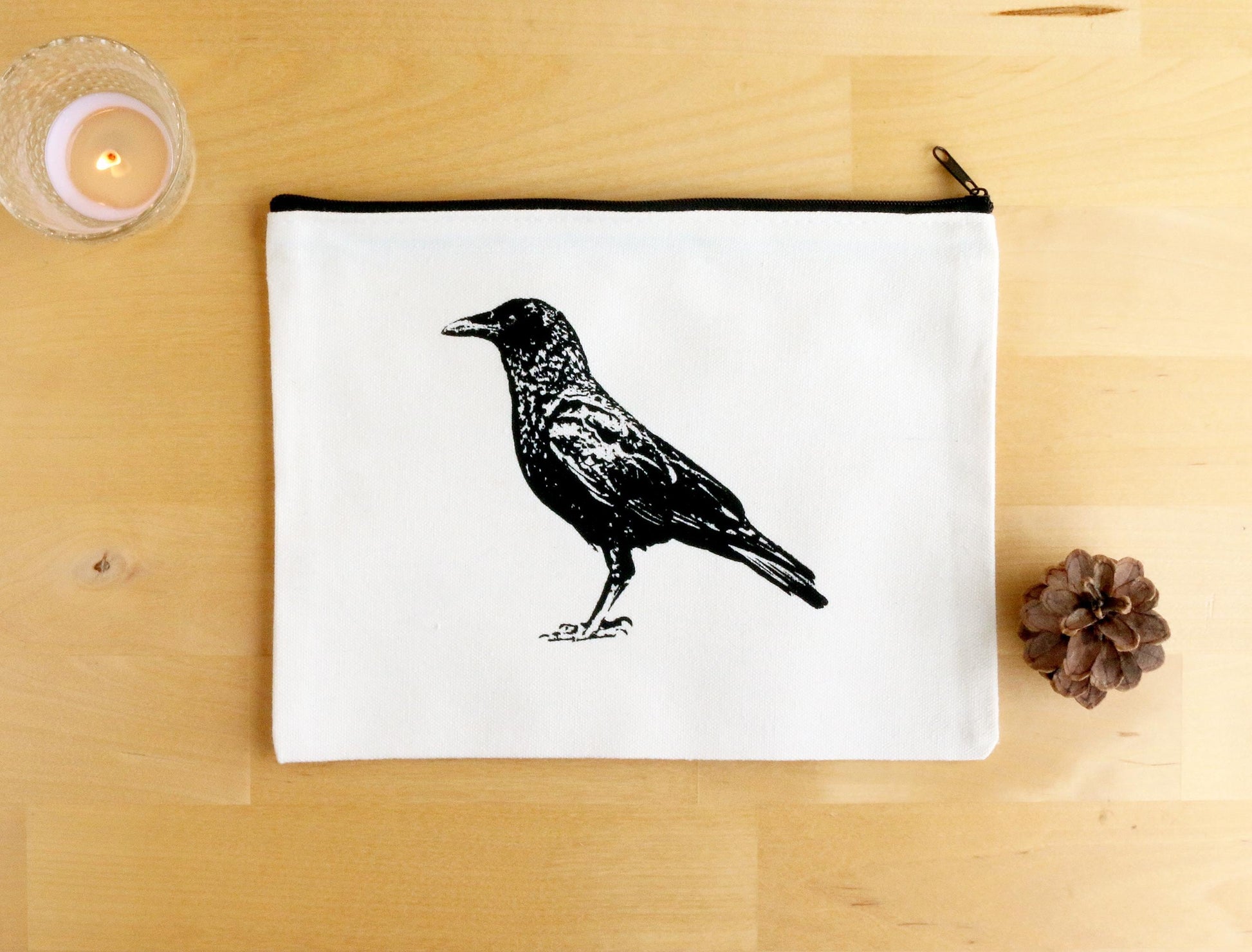 This cool crow pouch is something you'll carry with you every day. It's just the right size to hold makeup, pencils and pens or just the little odds and ends you need to have with you.